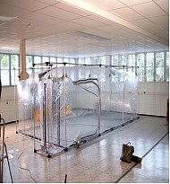 Available now from the leader in collective protection is the new Shelter in Place FA 150NS. This new product provides the capability to quickly convert any interior space to a protected environment kept free from airborne C/B/R/N contaminants. This new product has plenty of space and can protect up to 25 adults without the need to wear protective suits. Two people can set up this system in less than 15 minutes. The system is made of two components the NBC protected clear tent and the NBC filtration unit. These two combine to provide an unmatched level of protection. The system contains two doors. One for personnel entry and exit with an airlock and a larger entry should you desire to bring in beds, desks, chairs, telephones, computers, et cetera.